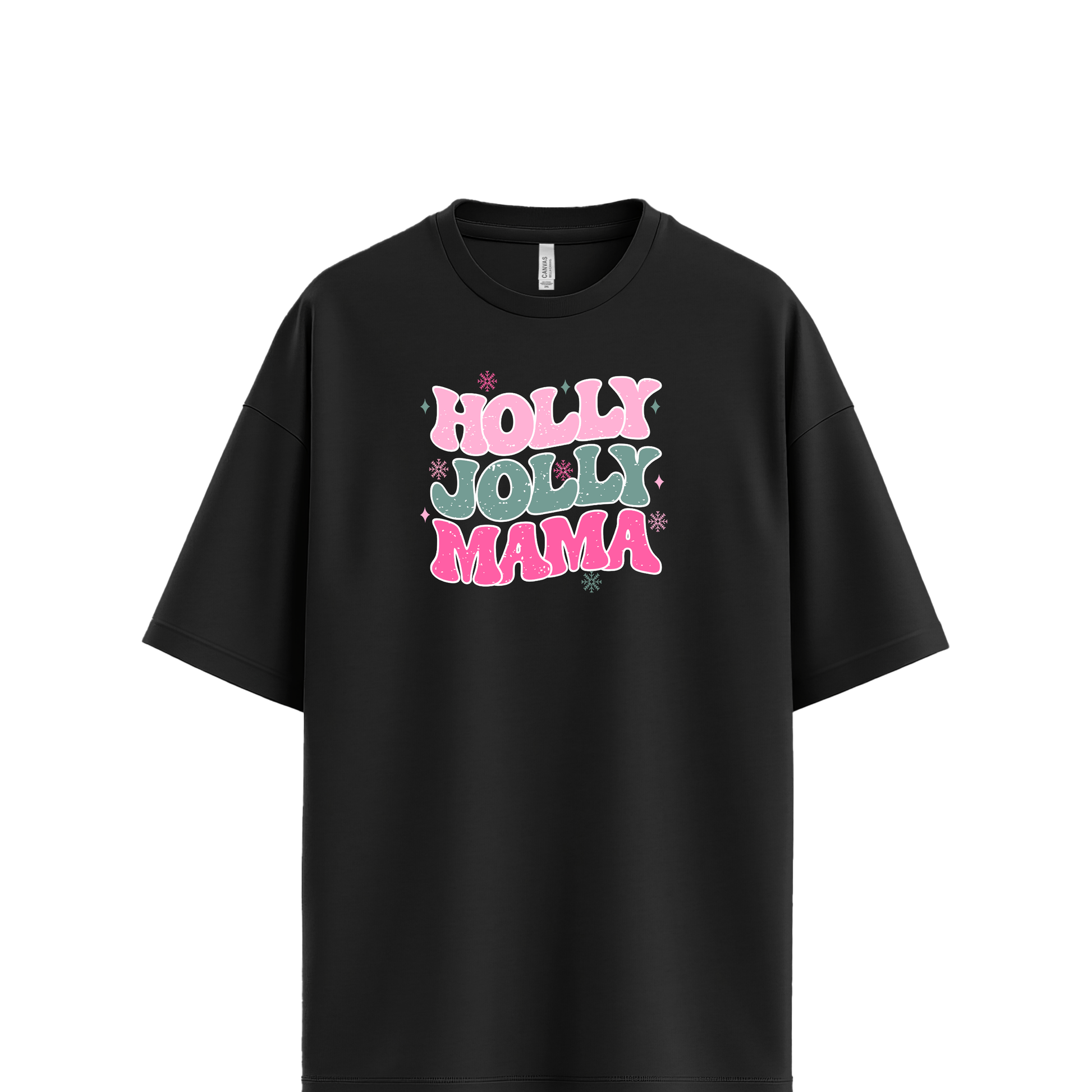 A festive and playful T-Shirt featuring text reasding 'Holly Jolly Momma'. This quirky design is perfect for those who love to add a touch of humor to their holiday wardrobe. Ideal for anyone looking to stand out during Christmas celebrations and enjoy a fun and unique style.